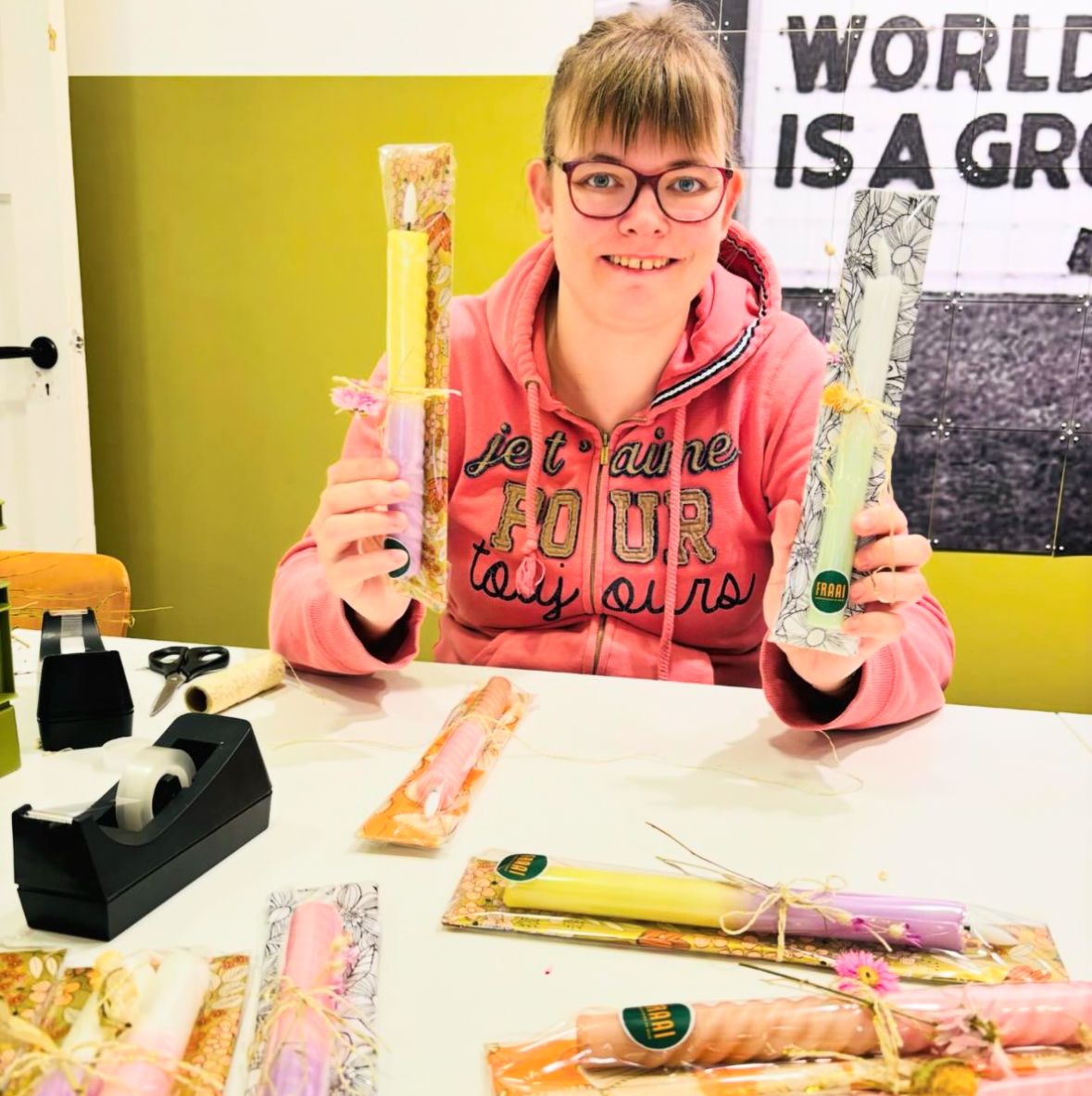 Dagbesteding Fraai is een creatieve, arbeidsmatige dagbesteding. De handgemaakte producten die we maken in ons atelier worden verkocht in onze kleurrijke winkel. Het assortiment is wisselend en origineel. Ook presentjes in grotere hoeveelheden verzorgen wij graag met ons fantastische team!