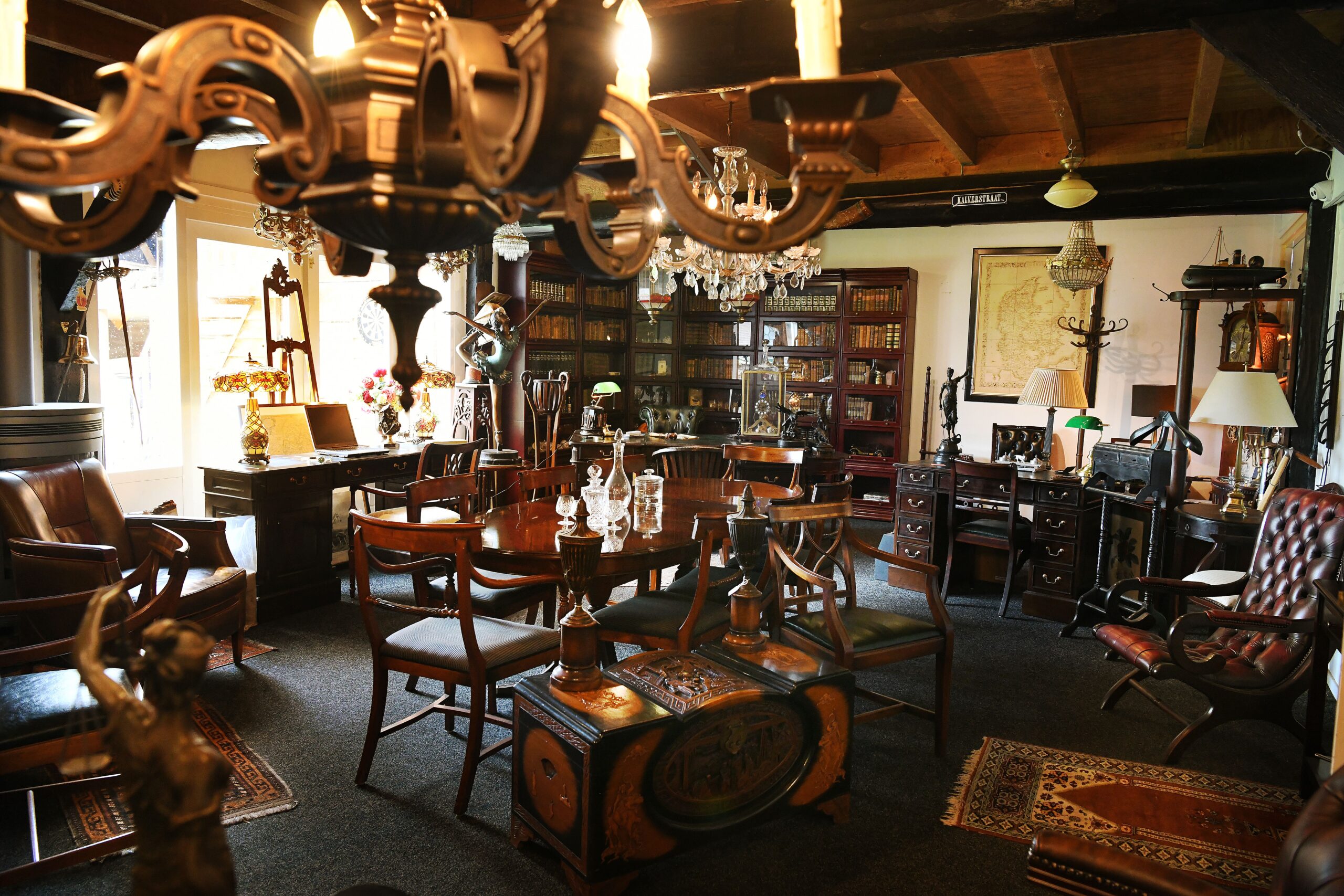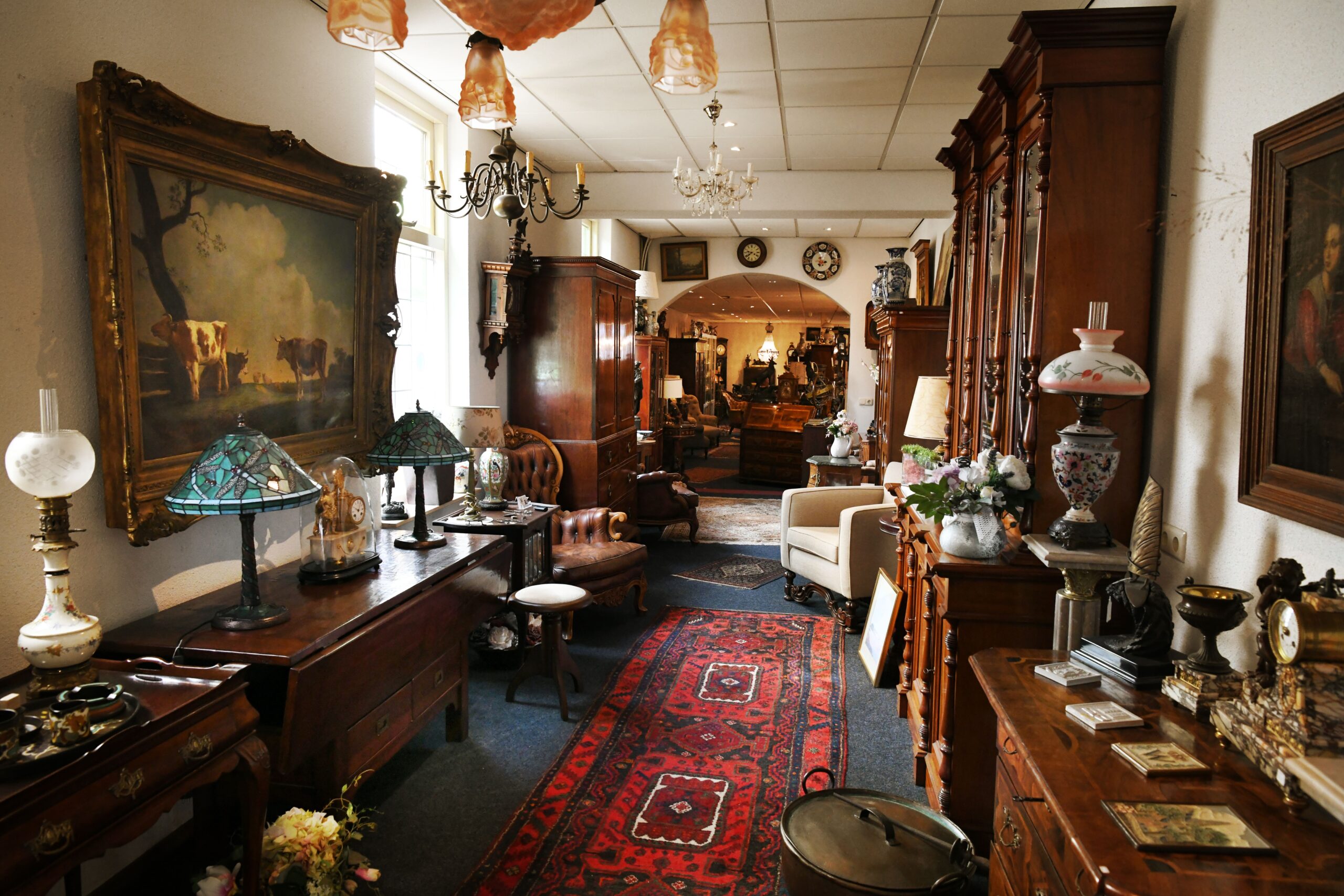 Bij ons kunt u genieten van een prachtige collectie antieke meubelen, waaronder staande klokken, Engelse kantoormeubelen, captain chairs, bureaus en boekenkasten van het model Globe Wernicke. Daarnaast bieden wij ook een selectie aan van Chesterfield meubels. Kortom, ons assortiment is te uitgebreid om in één keer op te noemen.